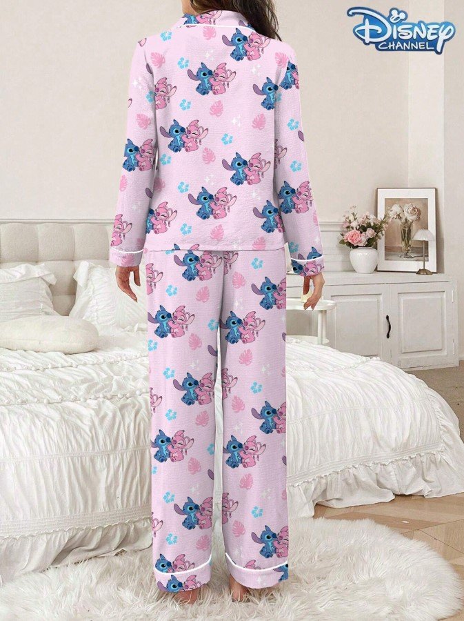 - اسم المنتج: Disney مجموعة بيجامة نسائية بطبعة ستيتش – قطعتان.