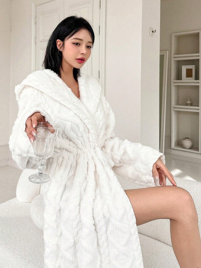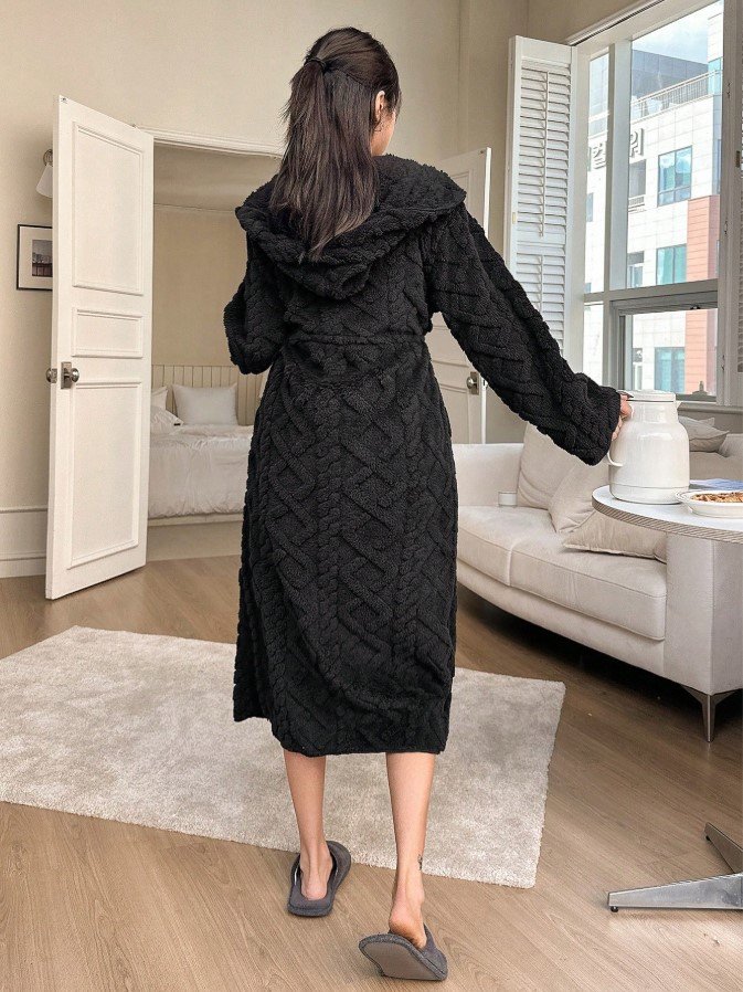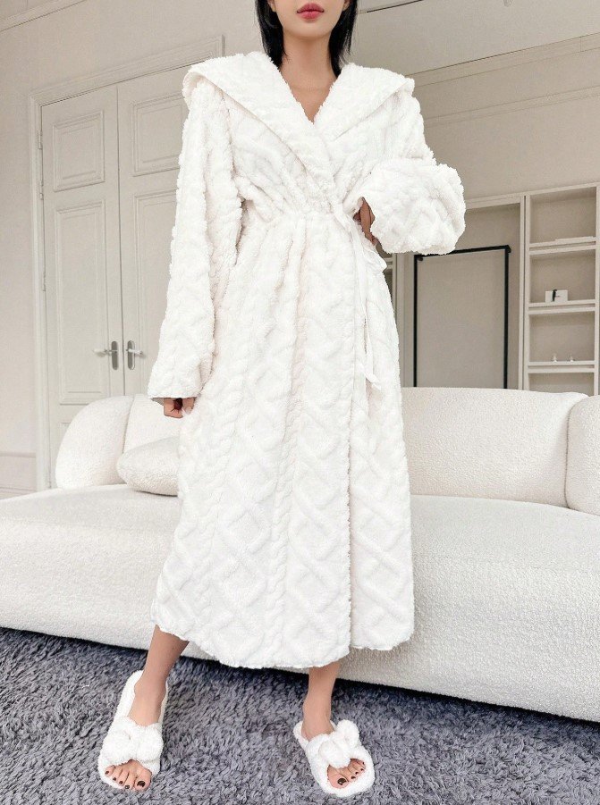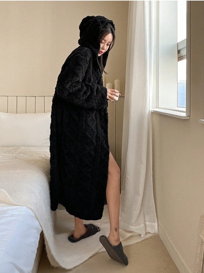 الرئيسية ملابس بيت نسائيه ثوب نوم بغطاء رأس على شكل دب تيدي، للخريف والشتاء