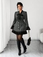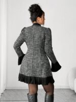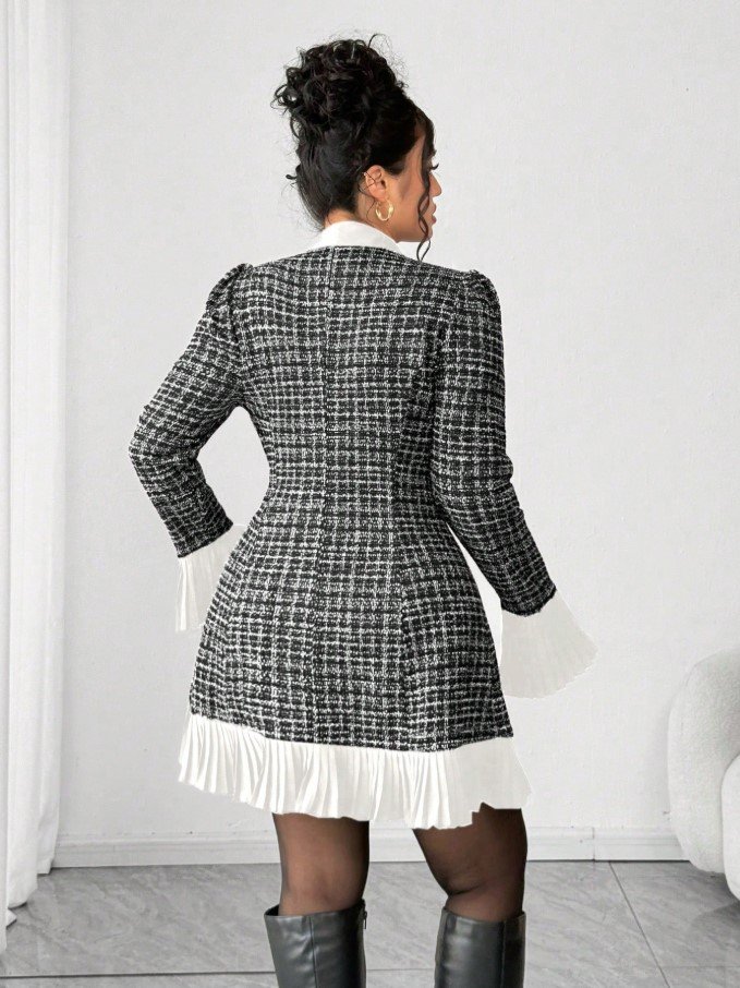 جمبسوت نسائية سمينة ذات سروال بيب سميك، فستان أنيق مخطط بنسيج تويد سميك، مناسب للعودة إلى المدرسة، التخرج، عيد الحب، مهرجان الموسيقى، عيد الأم، عيد الهالوين، ، عيد الفصح، اليوم الوطني، الحفلات الرسمية، حفلات المواعدة، موسم الزفاف، الأنشطة الخارجية