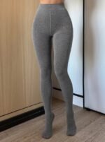 جوارب سوداء شفافة، تأثير نحيف الساق، مبطنة حرارية، مظهر غير شفاف، جوارب سميكة بدون أقدام للخريف/الشتاء