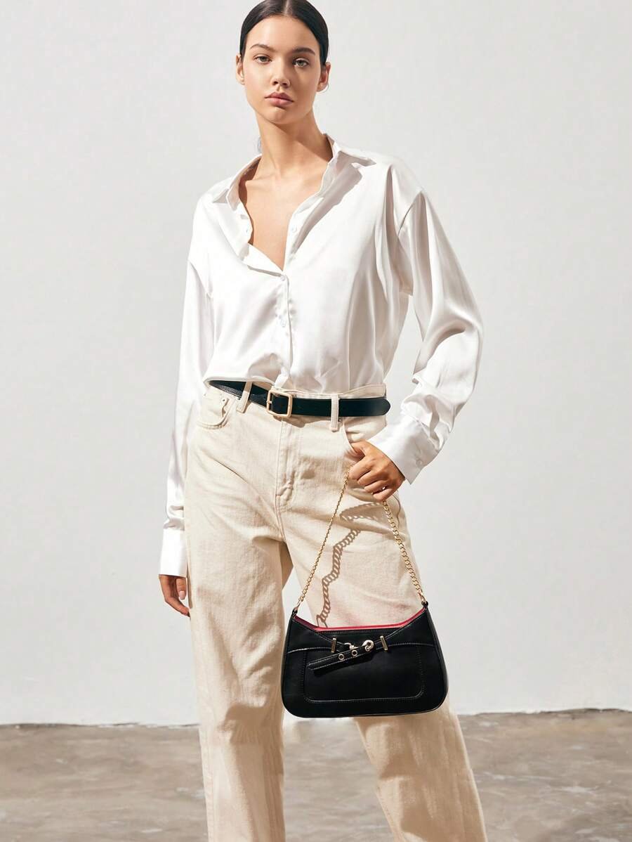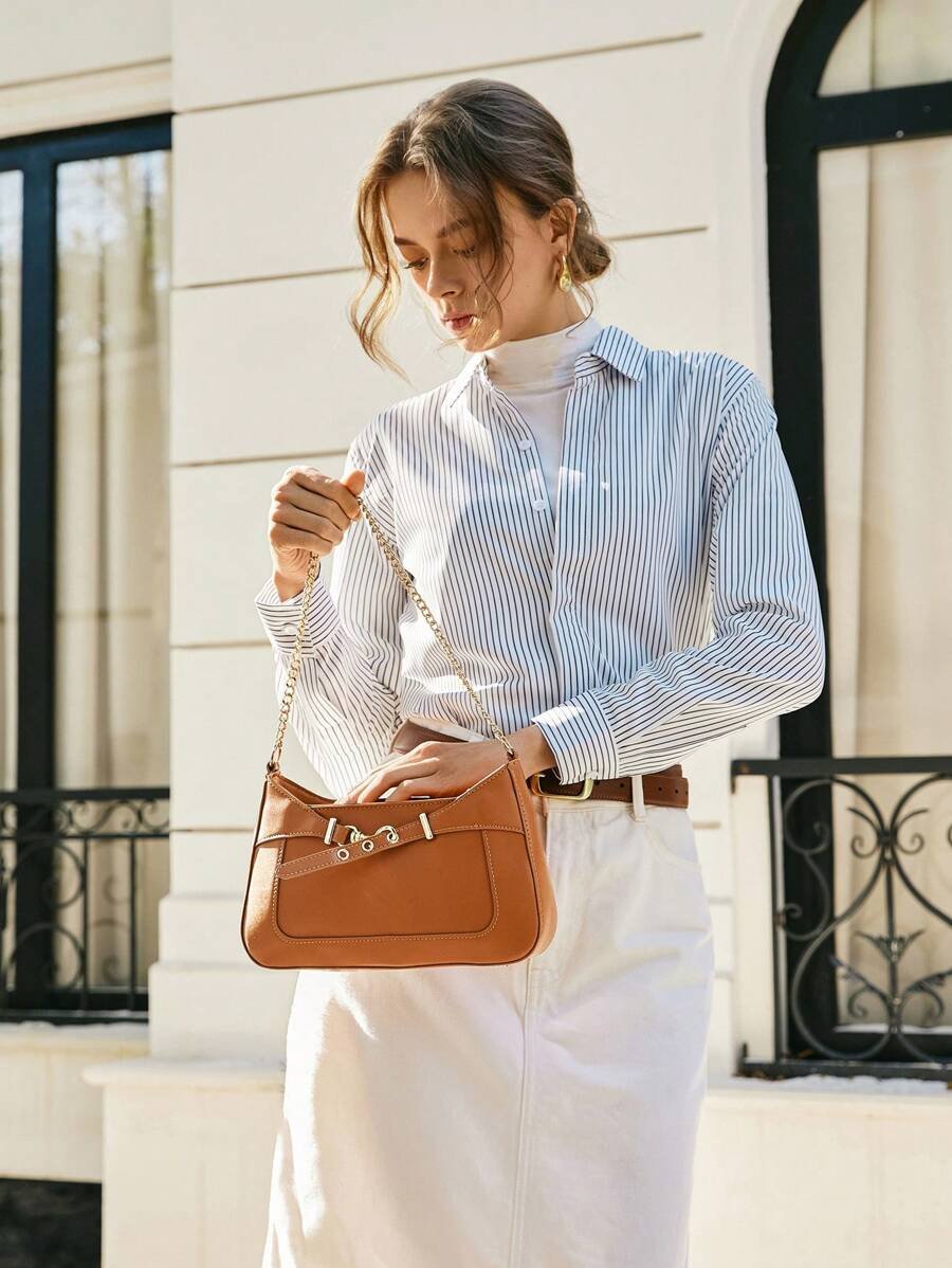 - الحزام المعدني يضيف لمسة من الفخامة مع متانة ودعماً إضافياً.