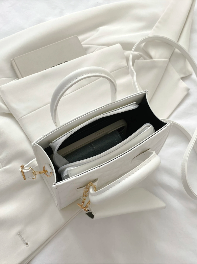 حقيبة بمربع مختمرة هي حقيبة نسائية مصممة بعناية لتلبية احتياجات المرأة العصرية فبفضل تصميمها الأنيق والعملي تعد الأختيار المثالي للفتيات المراهقات وطالبات الجامعات والعاملات فهي تناسب كافة الأوقات من العمل إلى النزهات.