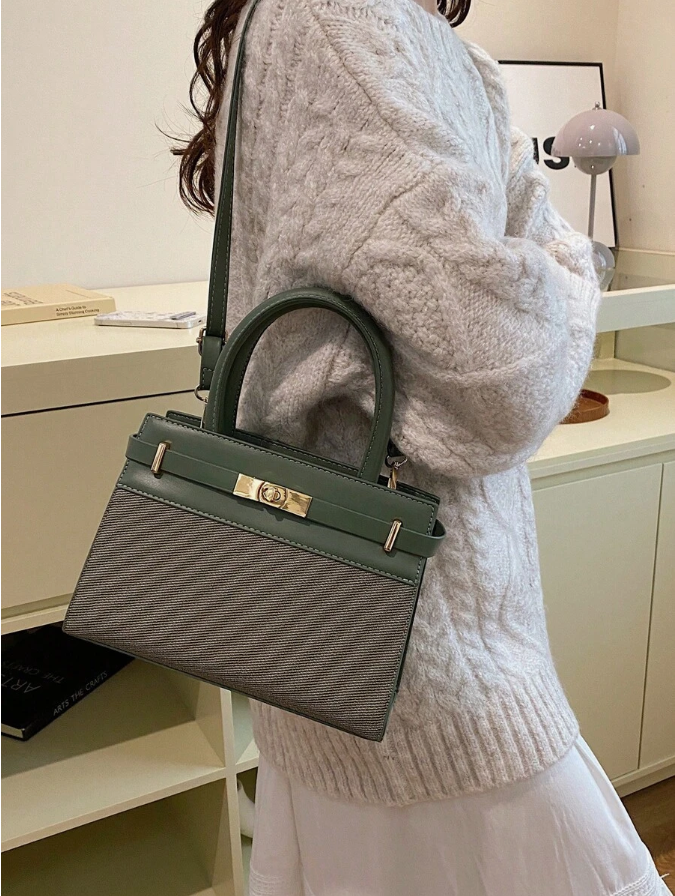 حقيبة يد كيلي ذات تصميم قطعة قطعة موضة، حقيبة مربعة صغيرة مزودة بسير قفل لي، حقيبة كتف متعددة الاستخدامات، تصميم متعدد الألوان حيوي، مناسبة للتنقل والتسوق والترفيه والعطلات وحفلات الموسيقى والحفلات