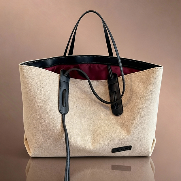 - حقيبة ذات حواف جلدية مميزة توفر المزيد من الاناقة.