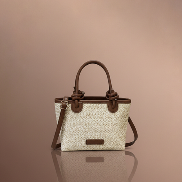 - الخامة: مزيج من القش الطبيعي المنسوج والجلد الصناعي عالي الجودة.