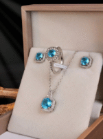 • طقم مجوهرات فضي نسائي يتميز بتصميم راقي وأنيق يناسب جميع الأوقات.