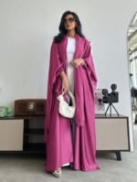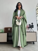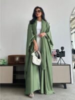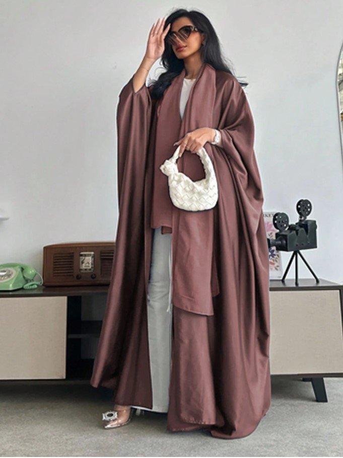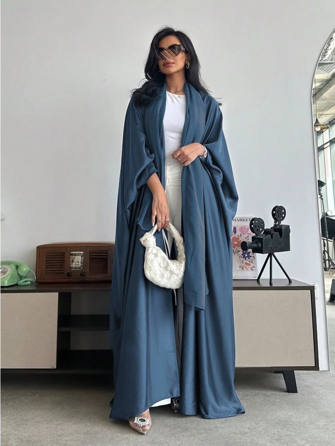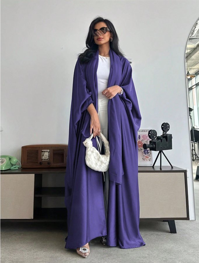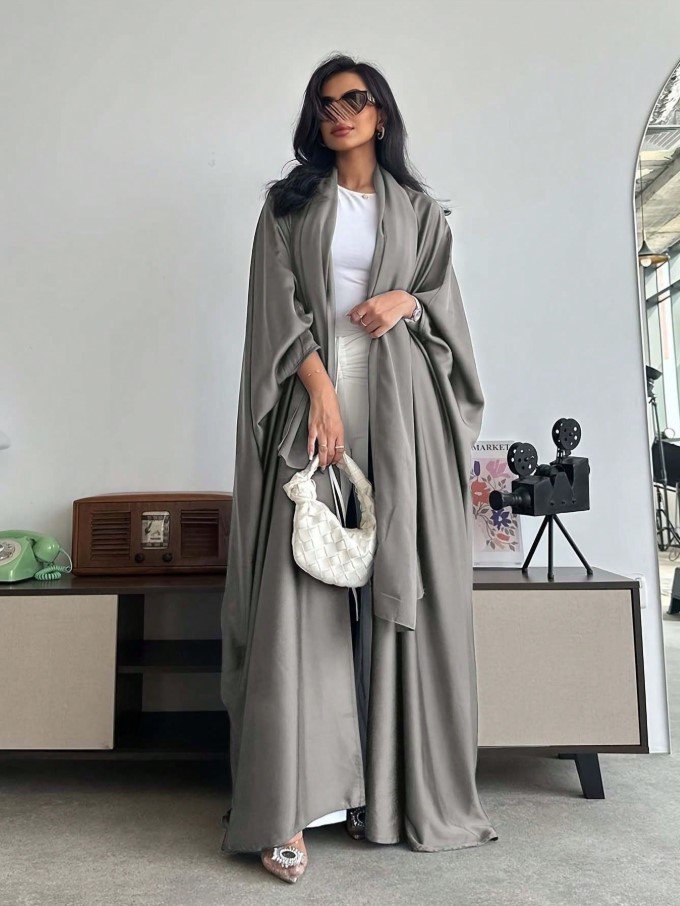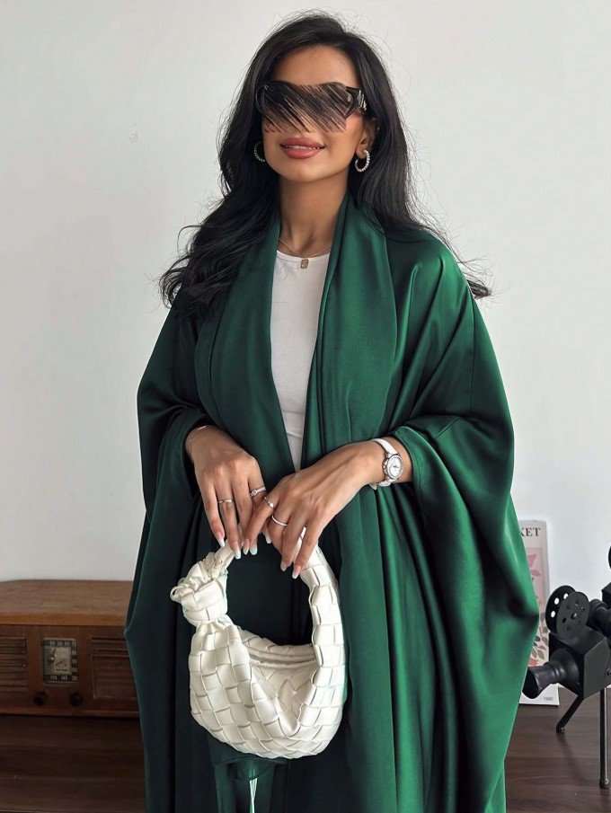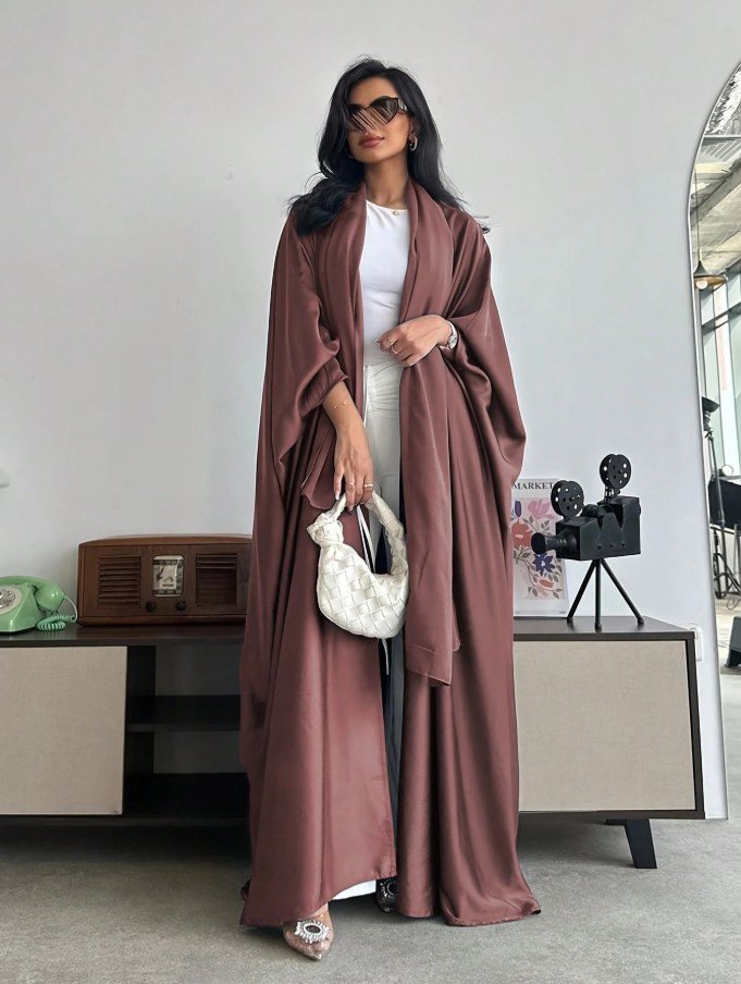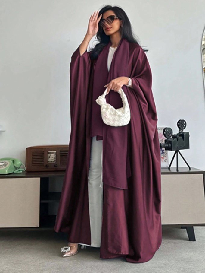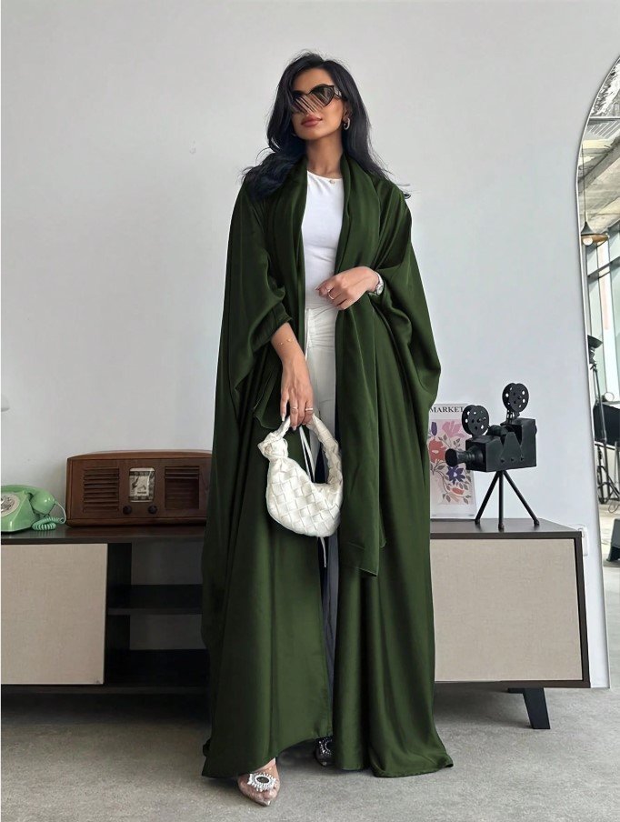 عباءة فضفاضة بلون أحادي على الطراز الشرق أوسطي مع أكمام على شكل خفاش وطرحة، عباية
