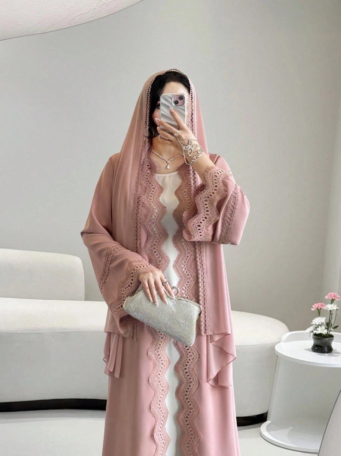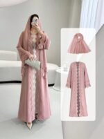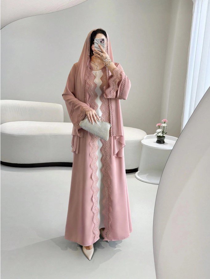 عبايات للنساء، طقم عبايات مفتوحة مع تطريز دانتيل، فستان داخلي بدون أكمام وطرحة شيفون – خفيفة الوزن، محتشمة وقابلة للتنفس للربيع/الصيف، فساتين سهرة أنيقة للنساء