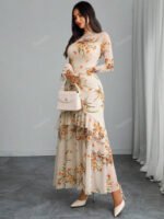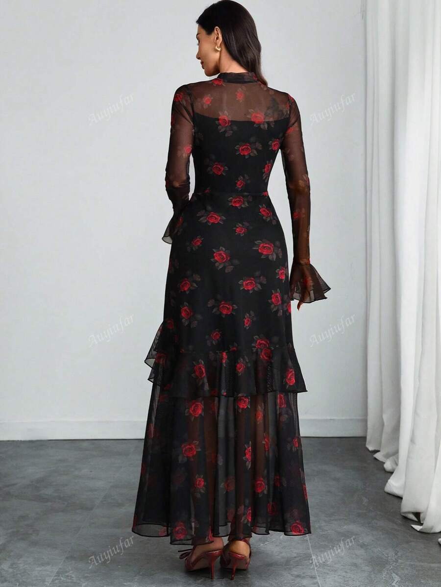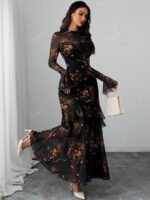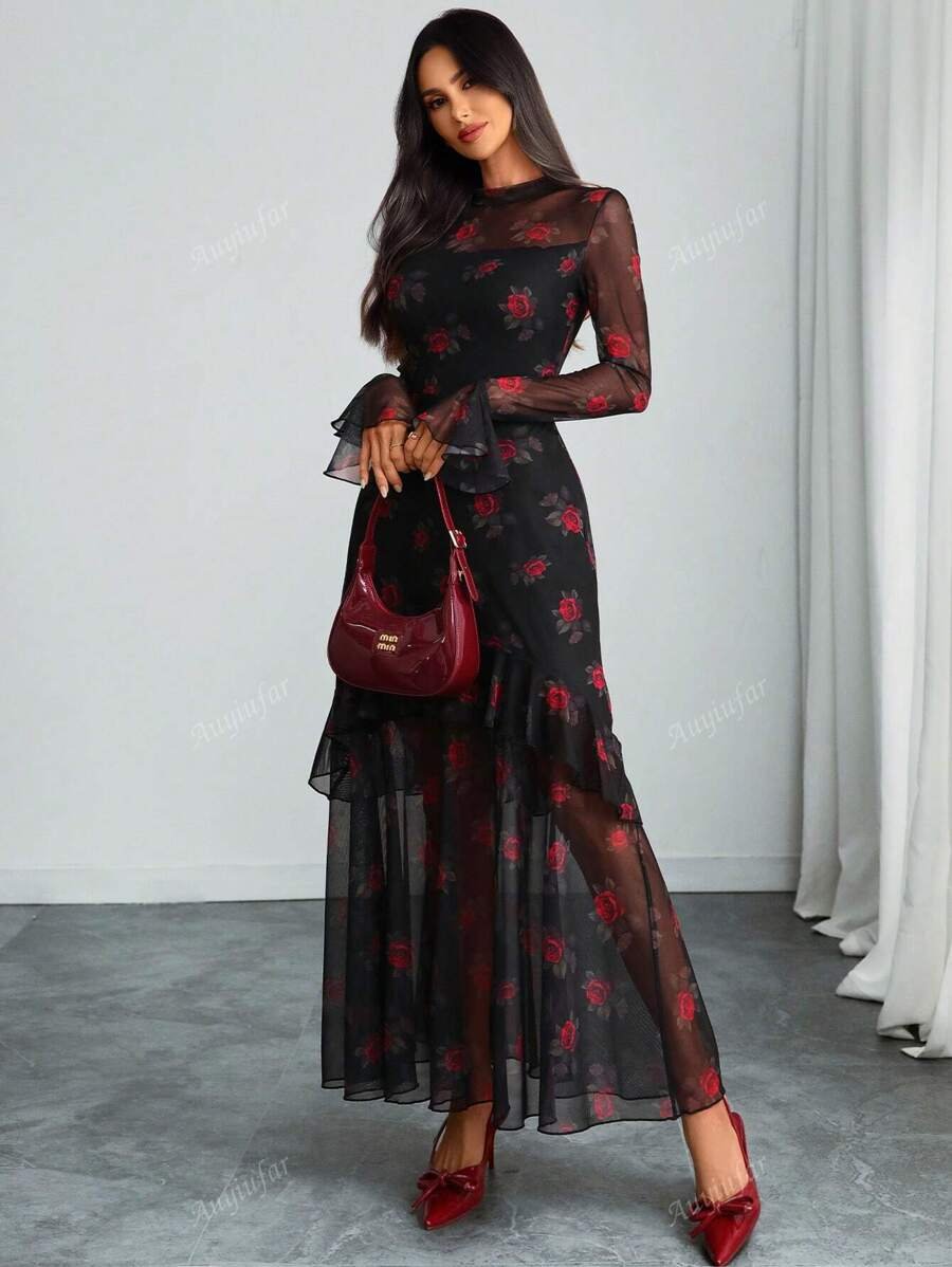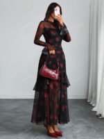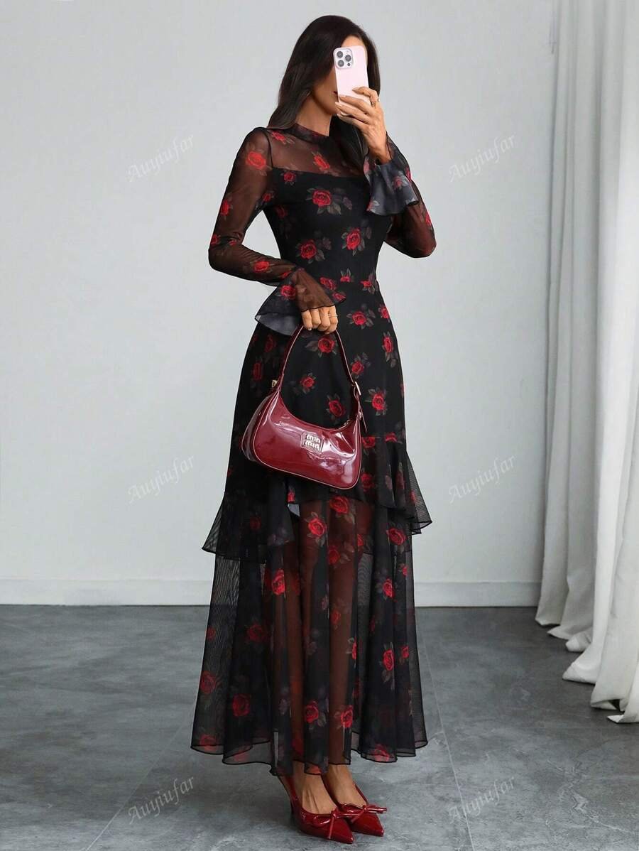 • القماش الشفاف والمزخرف بالورود يمنحك إطلالة أنيقة ومميزة.