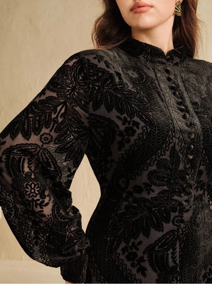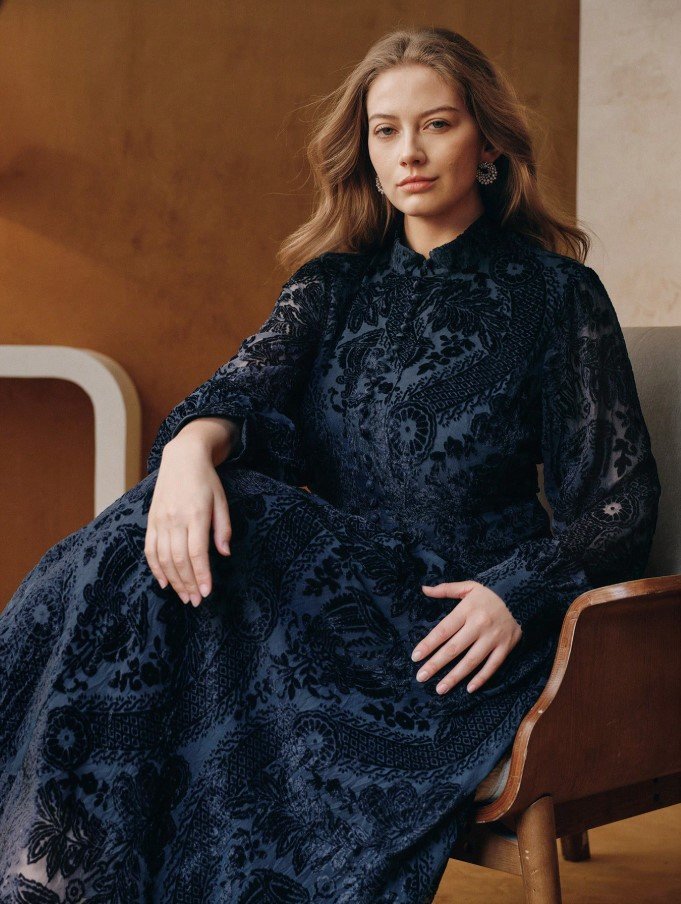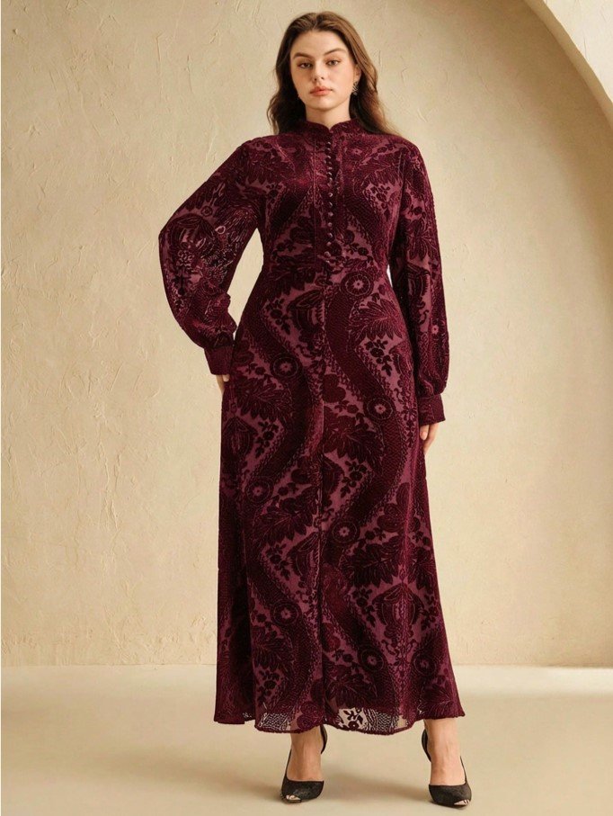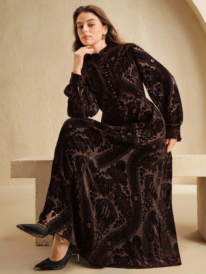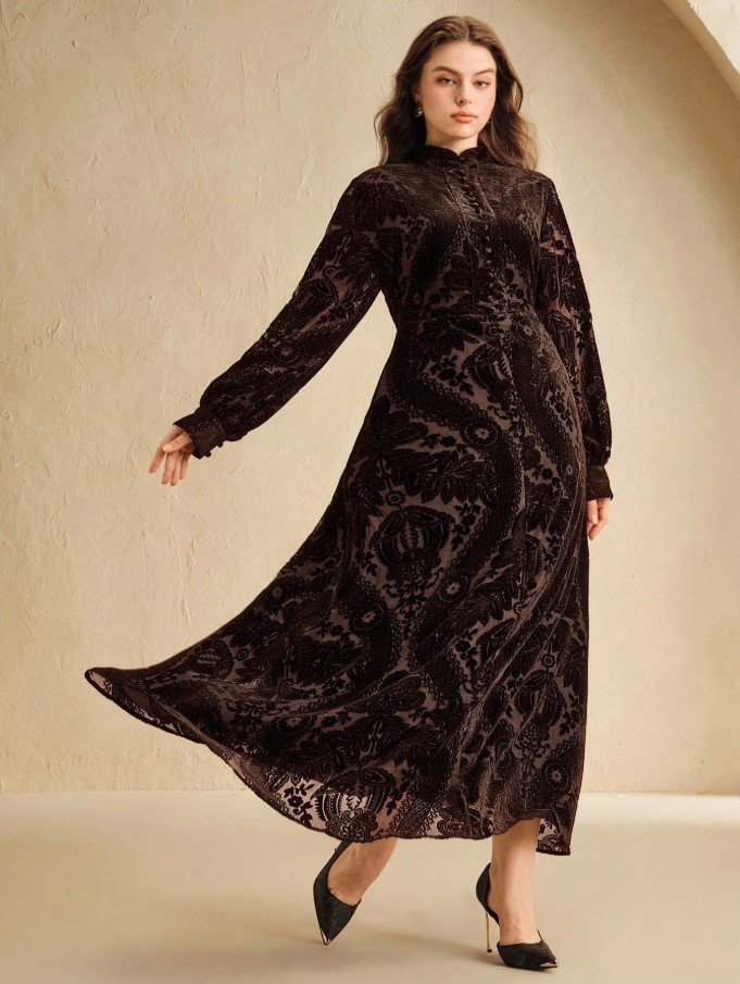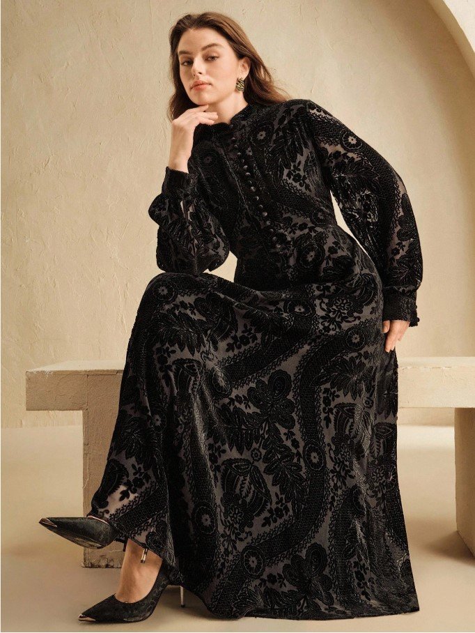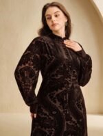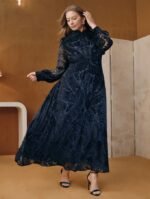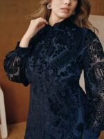 كن أول من يقيم “فستان بياقة عالية وذيل مرن مطبوع بالحرق بلون الأزرق الداكن مقاس كبير الحجم” إلغاء الرد