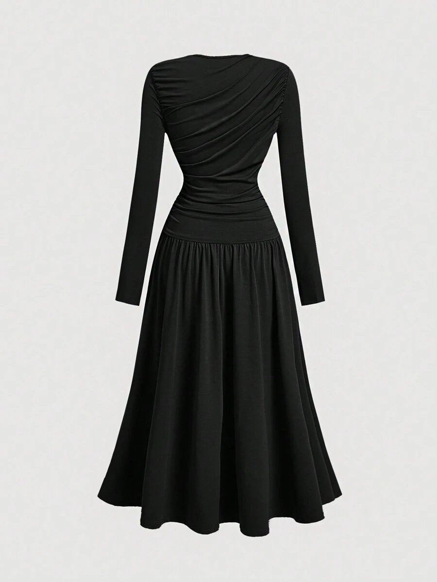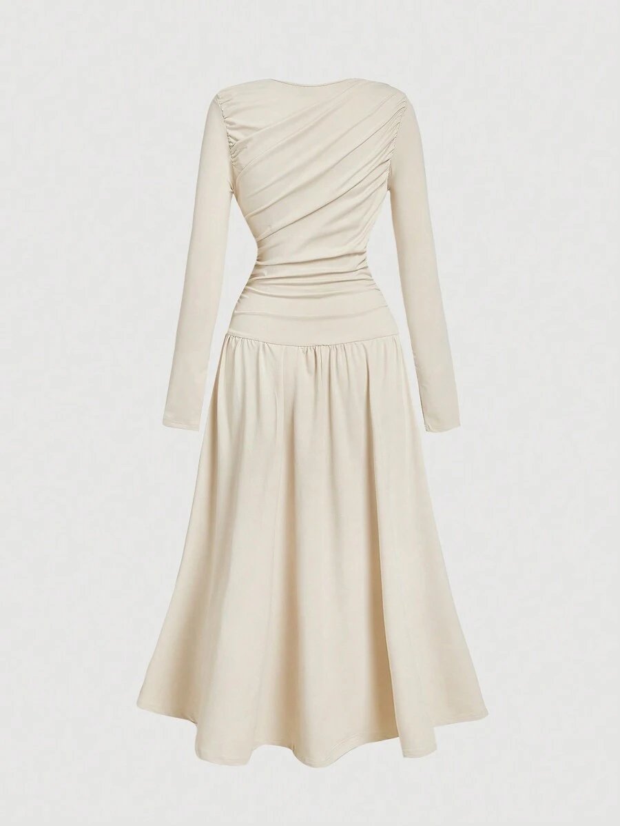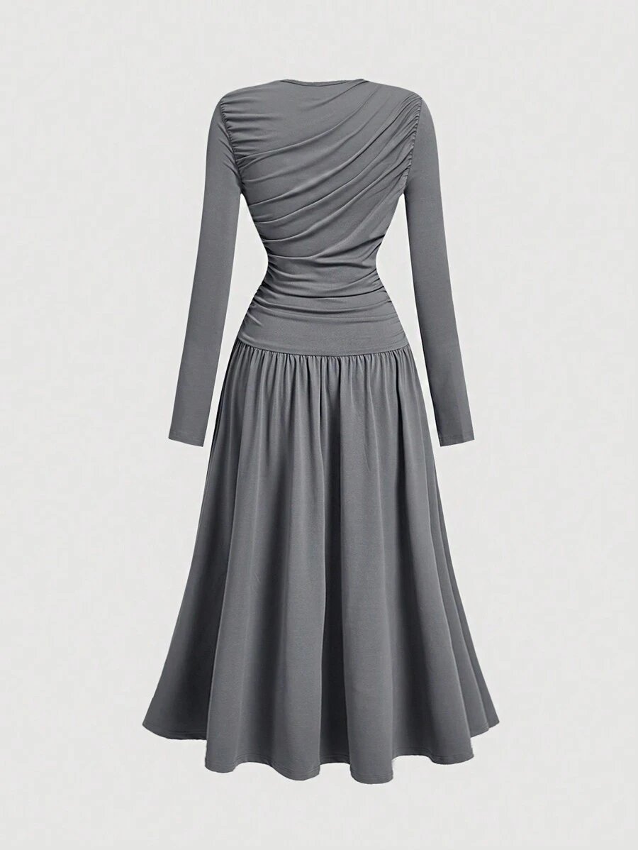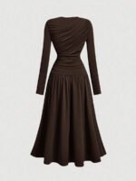 Modelyn فستان أنيق بأكمام طويلة وياقة على شكل حرف V للنساء