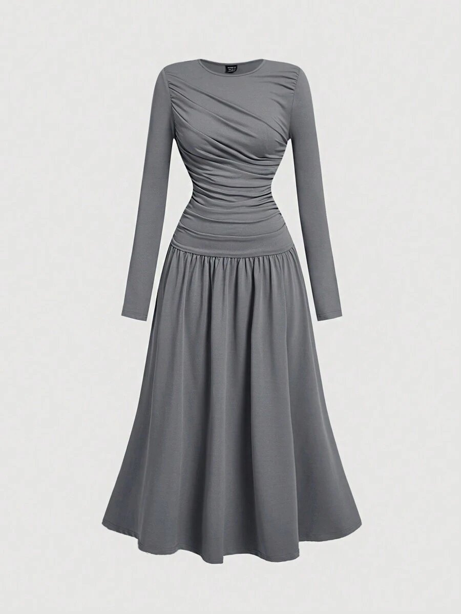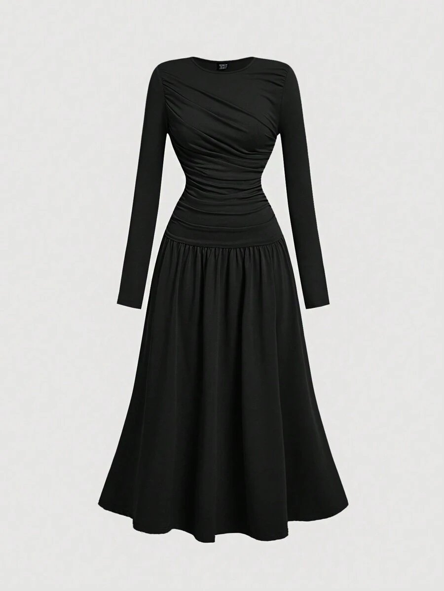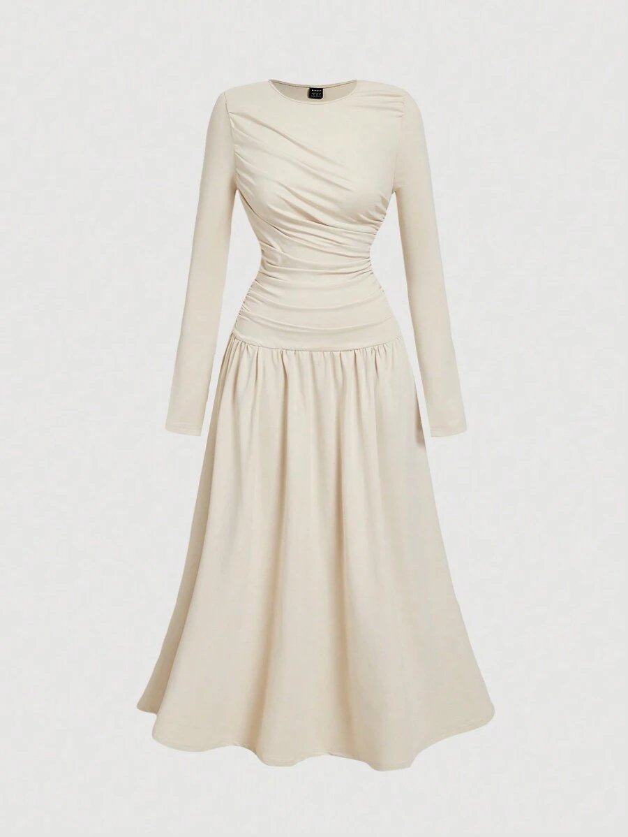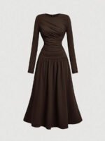 Modelyn فستان أنيق بأكمام طويلة وياقة على شكل حرف V للنساء
