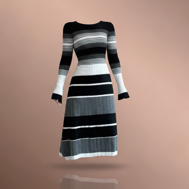 أبرزي جمالك بإطلالة مريحة وأنيقة مع فستان وسط متموج بأكمام مموجة بفضل تصميمه المموج والأكمام الطويلة المخططة التي تمنحك إطلالة أنثوية ناعمة مناسبة للأجواء اليومية والمناسبات البسيطة.