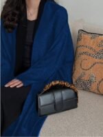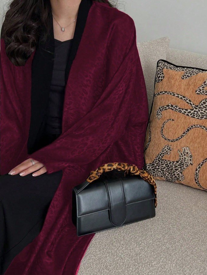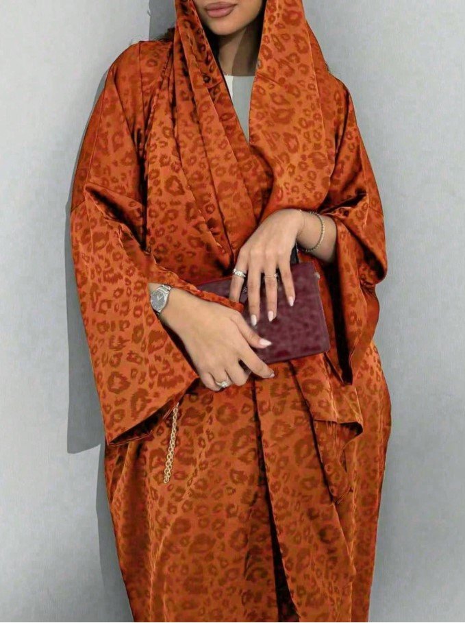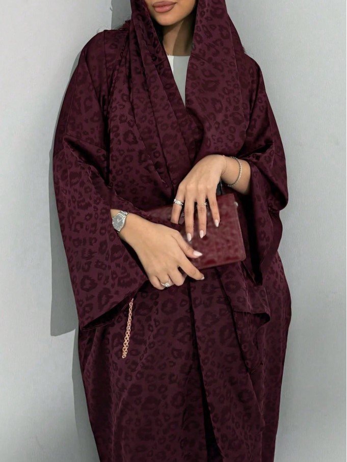 عباءة فضفاضة بلون أحادي على الطراز الشرق أوسطي مع أكمام على شكل خفاش وطرحة، عباية