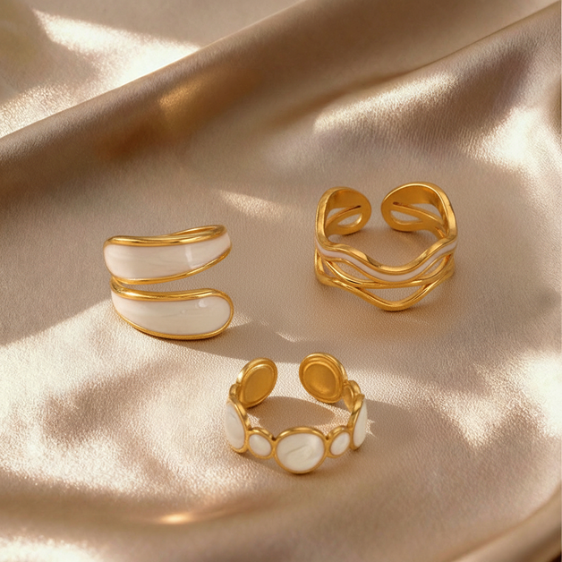 جددّي إطلالتك اليومية مع مجموعة خواتم بتصميم فني غير تقليدي يجمع بين الجاذبية والبساطة ليمنح يديك لمسة فريدة وتضيف على مظهرك حضورًا أنيقًا يعكس ذوقك الراقي وشخصيتك العصرية.