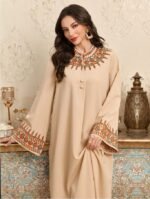 مخور فستان عربي مطرز بزهور بأزرار أمامية بطراز بوهيمي، متواضع