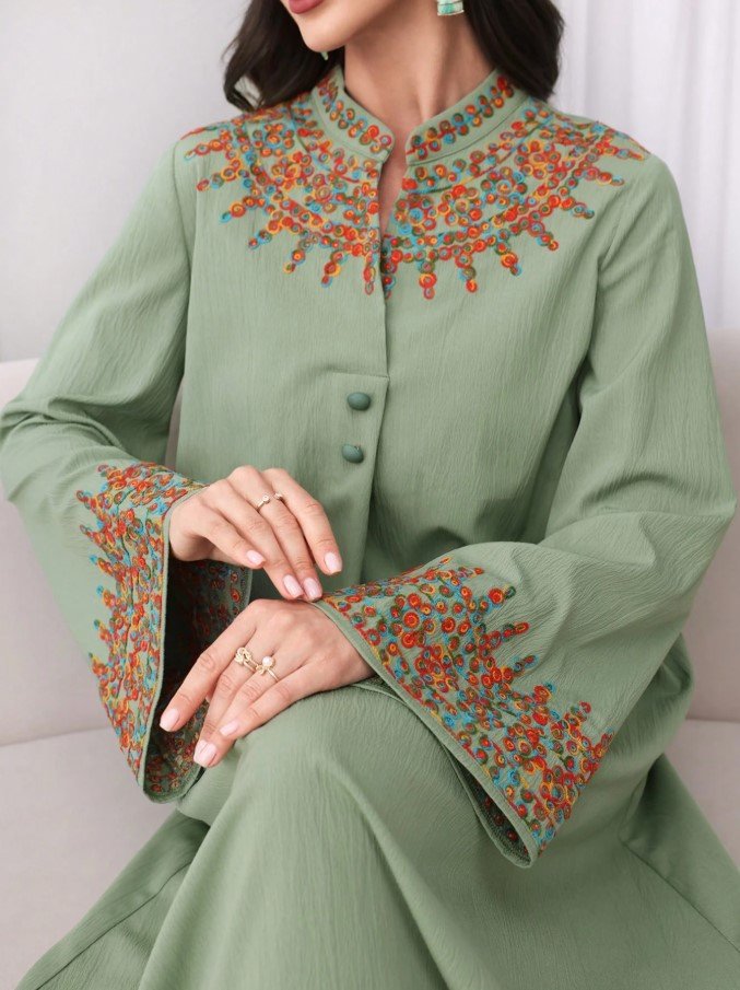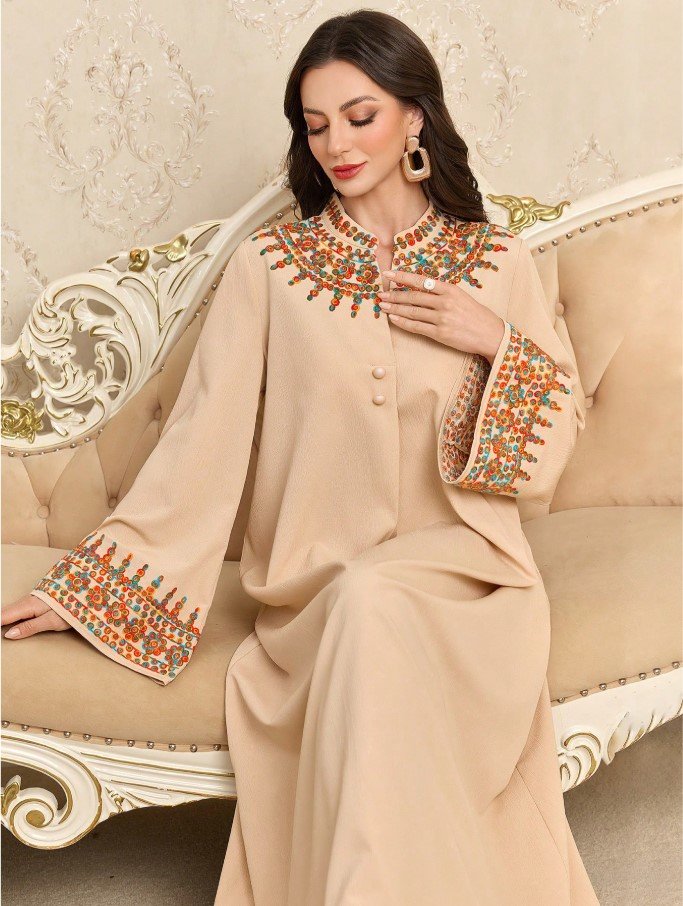 الرئيسية ملابس نسائيه مخور مخور فستان عربي مطرز بزهور بأزرار أمامية بطراز بوهيمي، متواضع