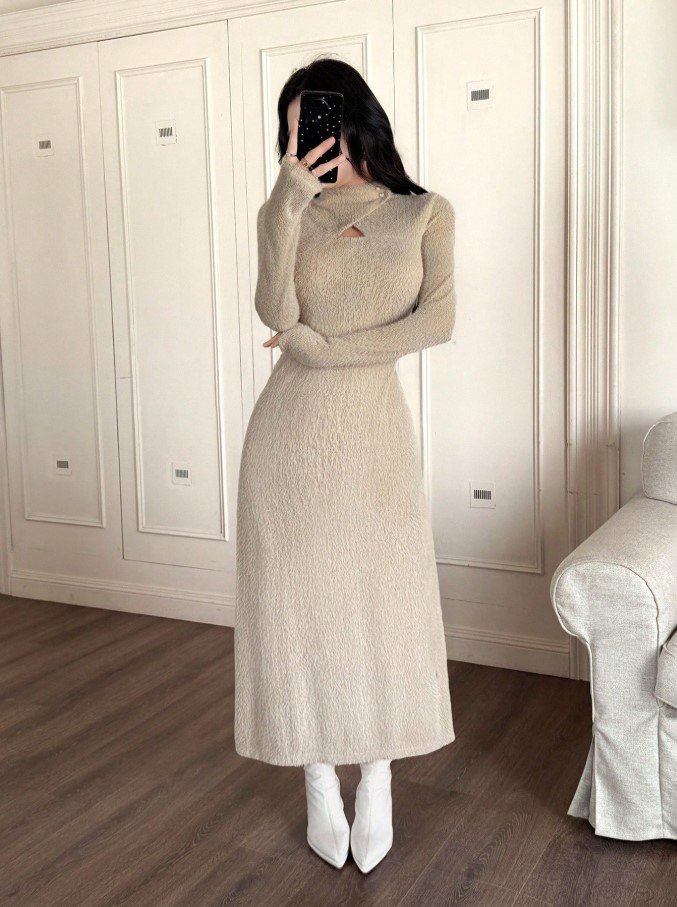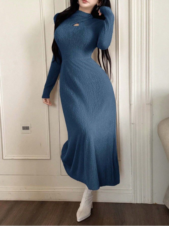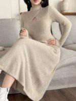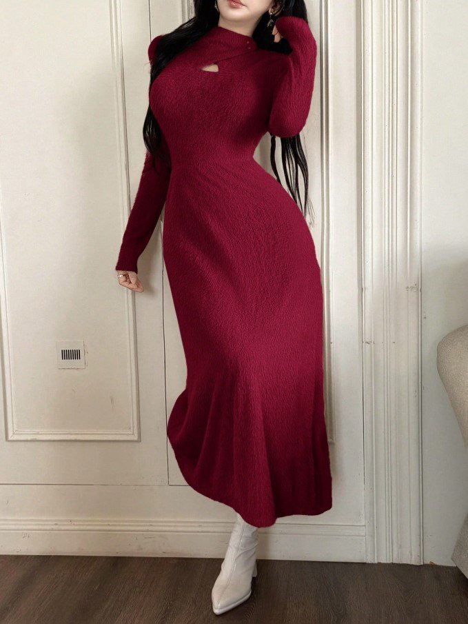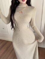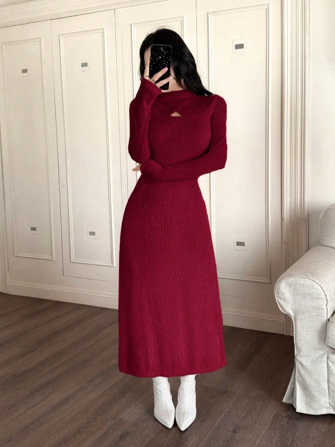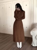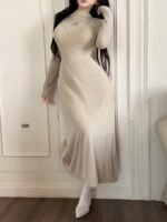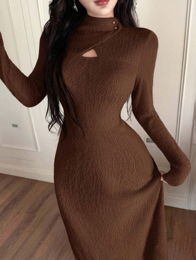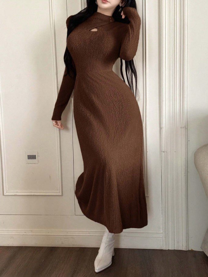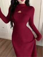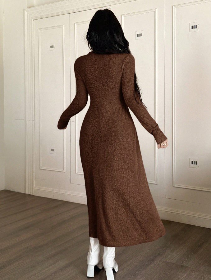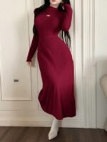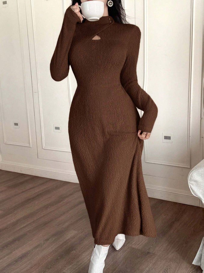 فستان طويل ضيق بياقة عالية