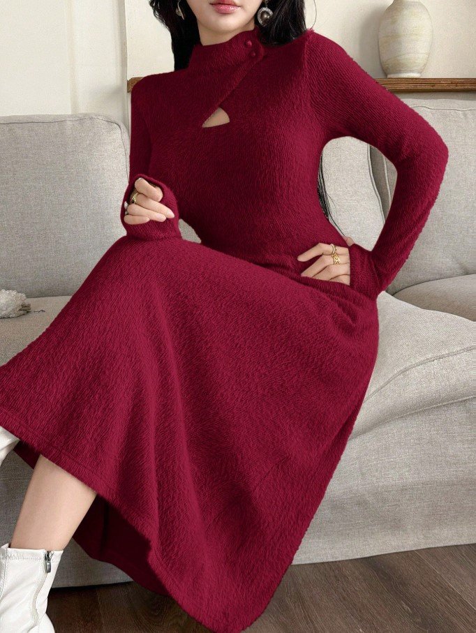 Feyla فستان نسائي كاجوال حضري بنسيج متماسك وياقة على شكل فتحة المفتاح
