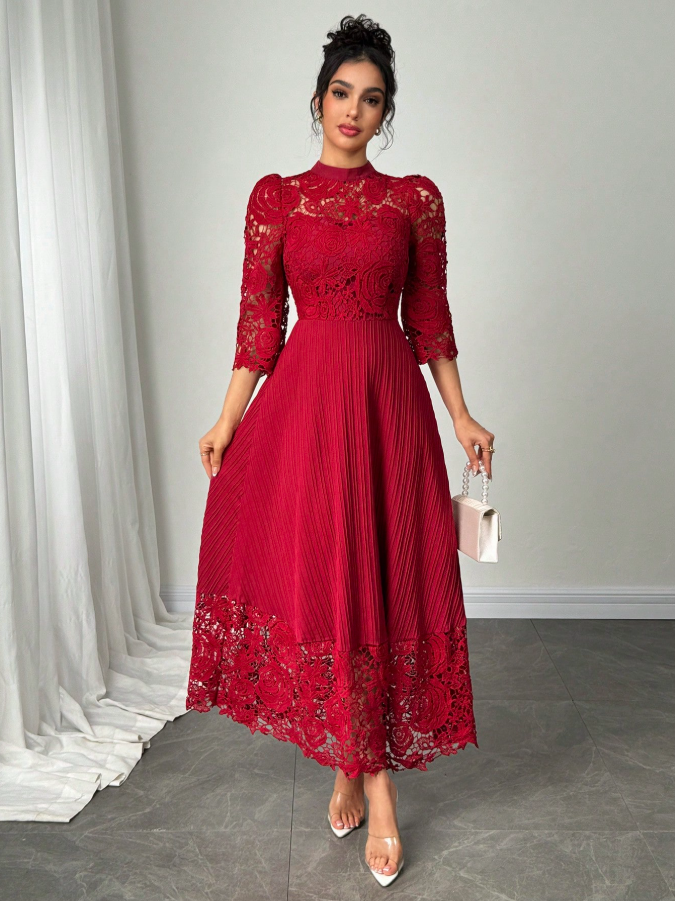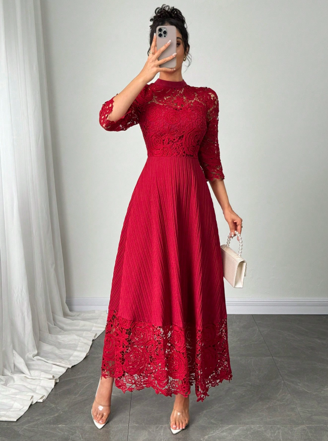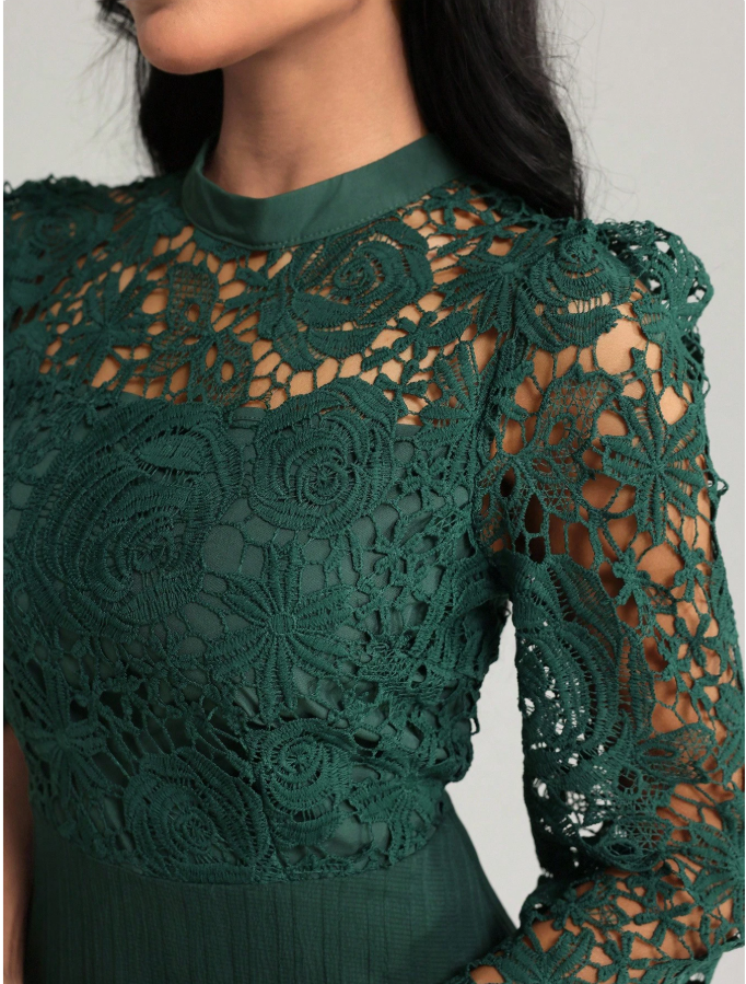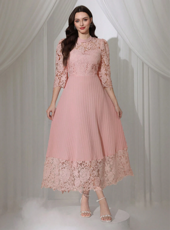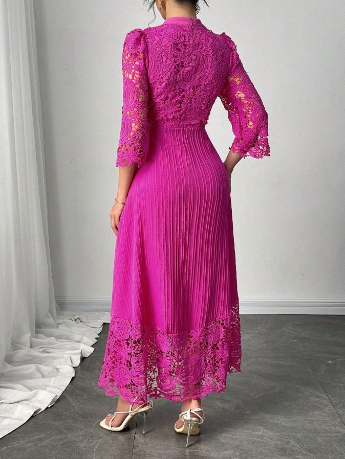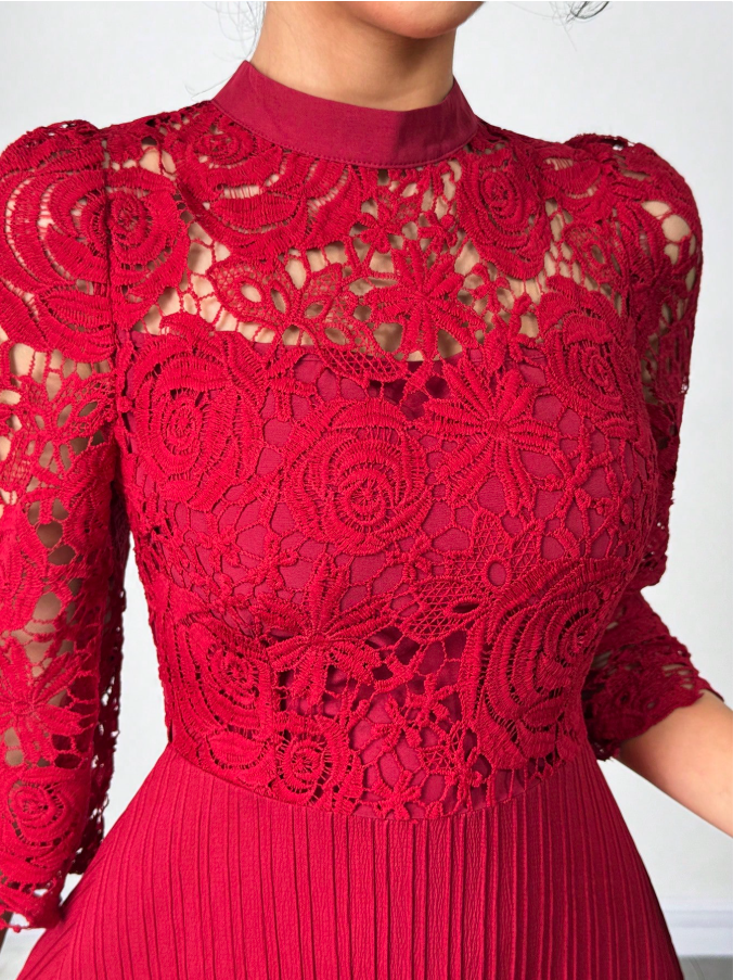 Modelyn فستان أنيق بأكمام طويلة وياقة على شكل حرف V للنساء
