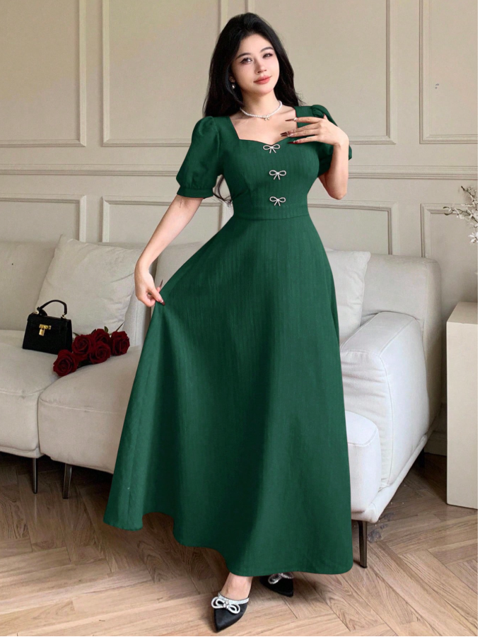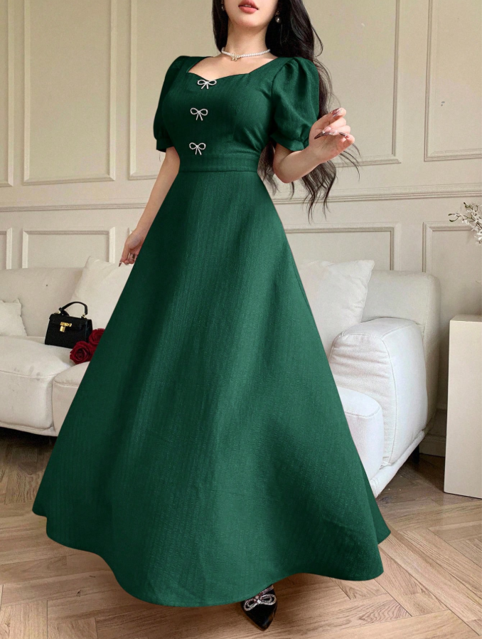 الرئيسية ملابس نسائيه Modelyn اليوم الوطني السعودي فستان نسائي مزين بشريطة وراينستون أنيقة