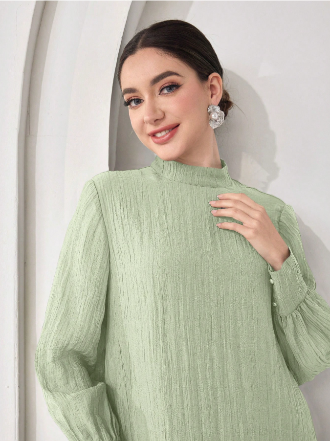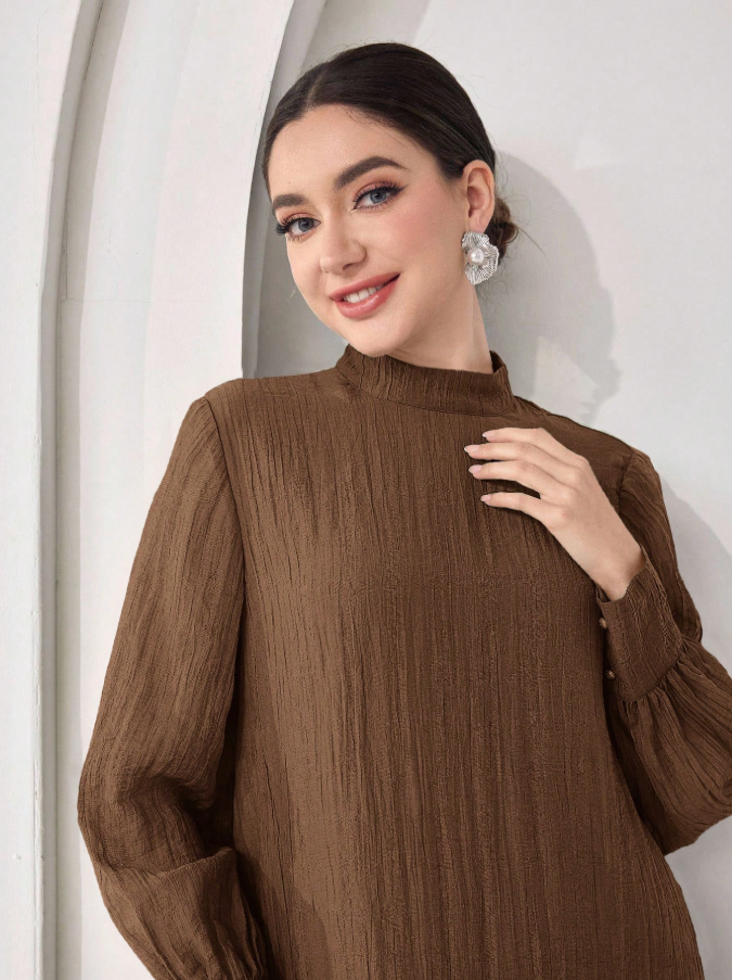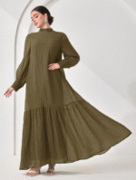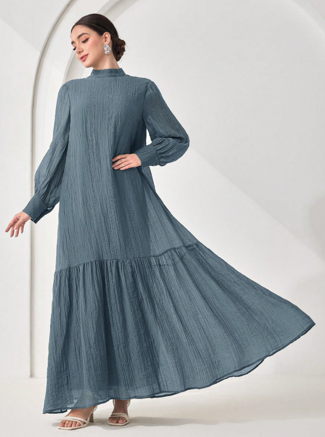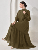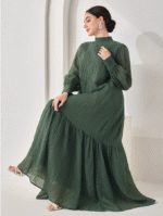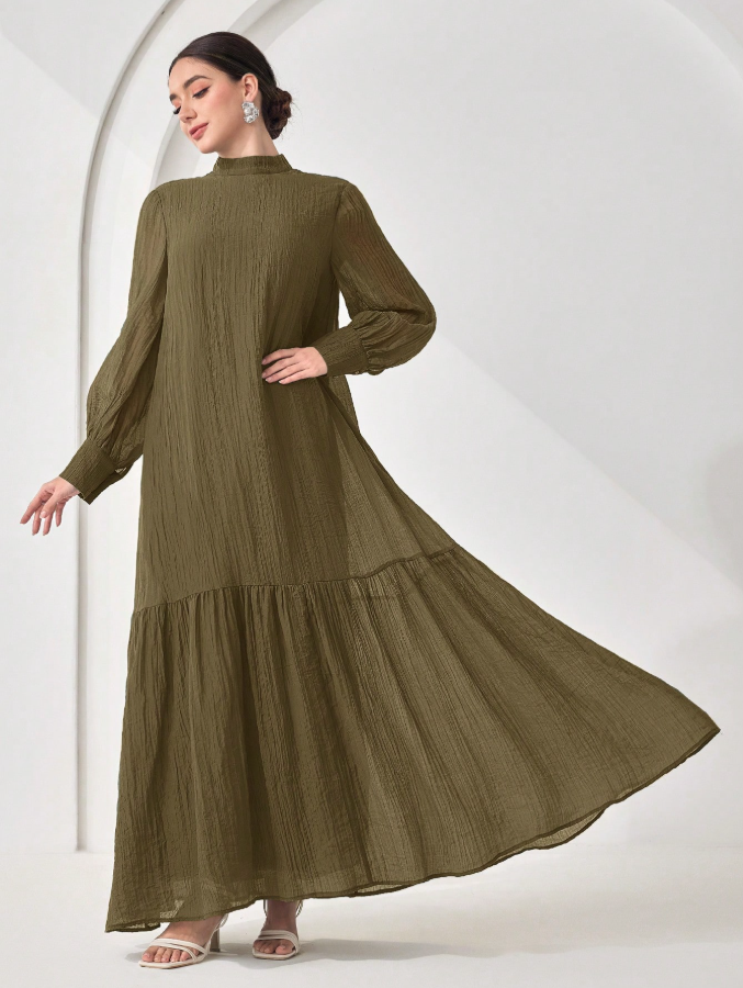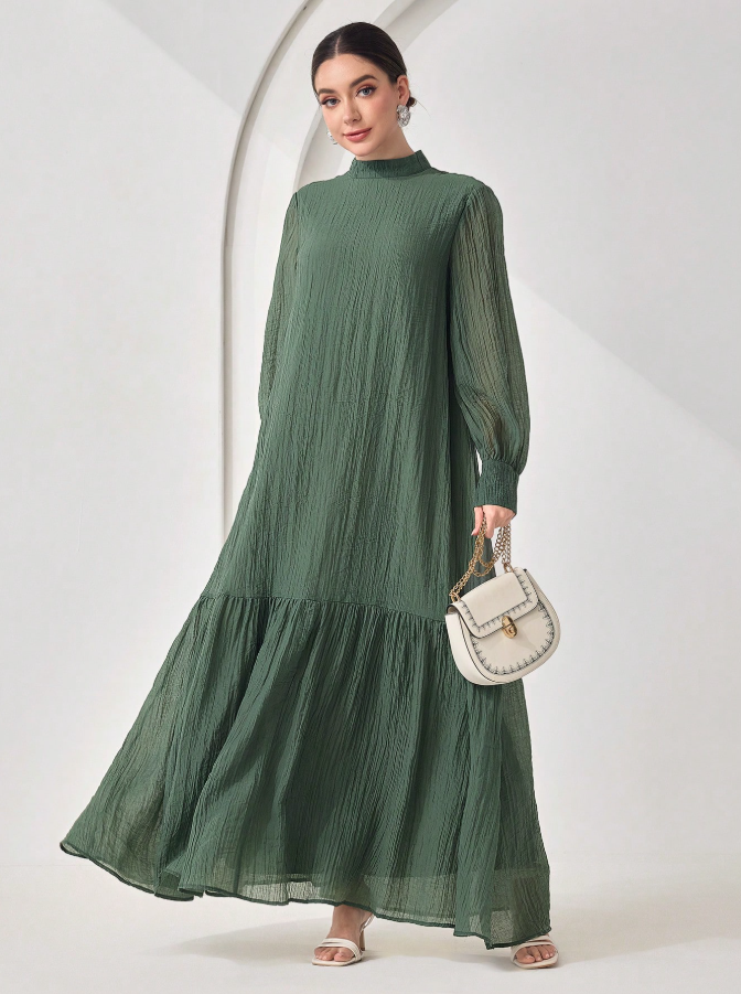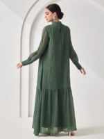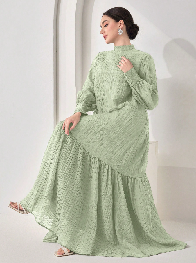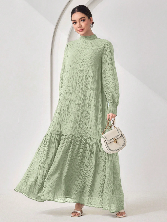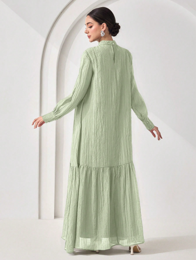 الرئيسية ملابس نسائيه Veilorie اليوم الوطني السعودي فستان كاجوال للنساء بياقة مندرين وأكمام طويلة وذيل مخرم بلون واحد
