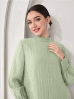 كن أول من يقيم “Veilorie اليوم الوطني السعودي فستان كاجوال للنساء بياقة مندرين وأكمام طويلة وذيل مخرم بلون واحد” إلغاء الرد